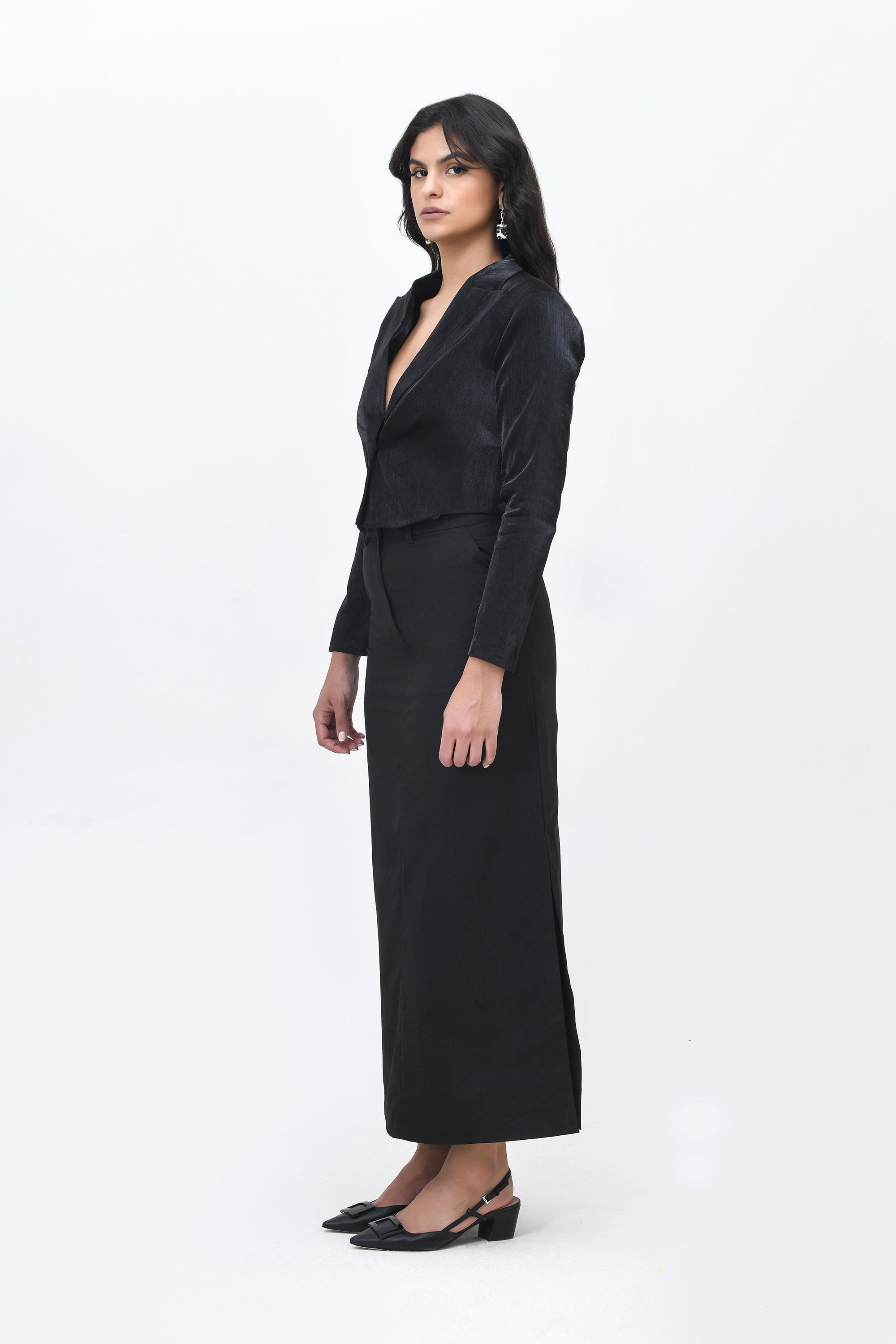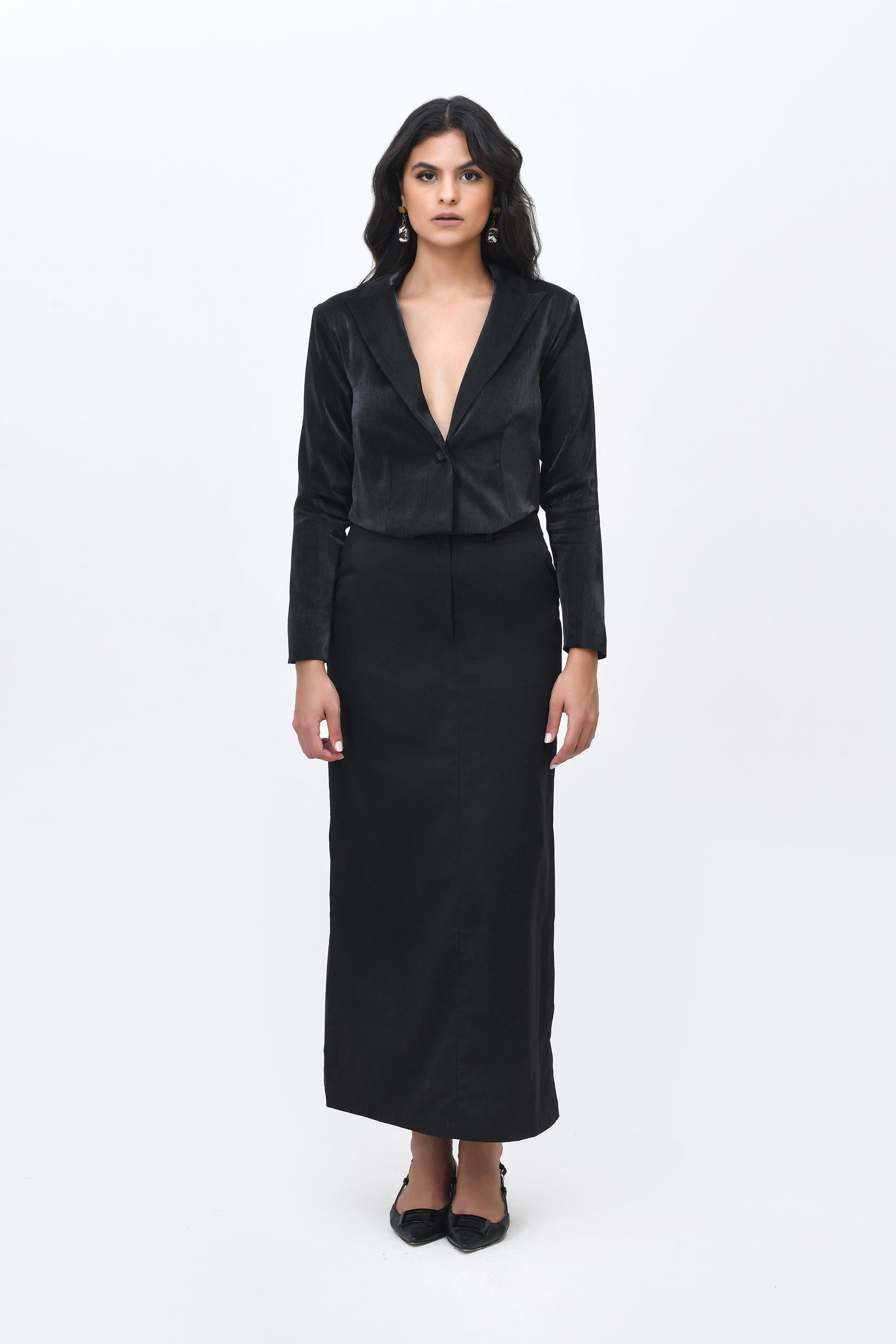 This strapless top features straight neckline and cascade around the bust. Its invisible side zip fastening ensures a seamless and polished fit.