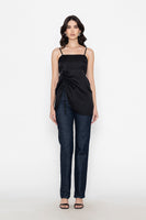 Crafted from Modal Satin fabric, this top envelopes you in a soothing mint colour. While the graceful shoulder straps delicately frame the neckline, the ruched detailing and the adjustable drawstring allow you to customize the silhouette to your preference. Wear it to a formal dinner, cocktail party or a very special date night.