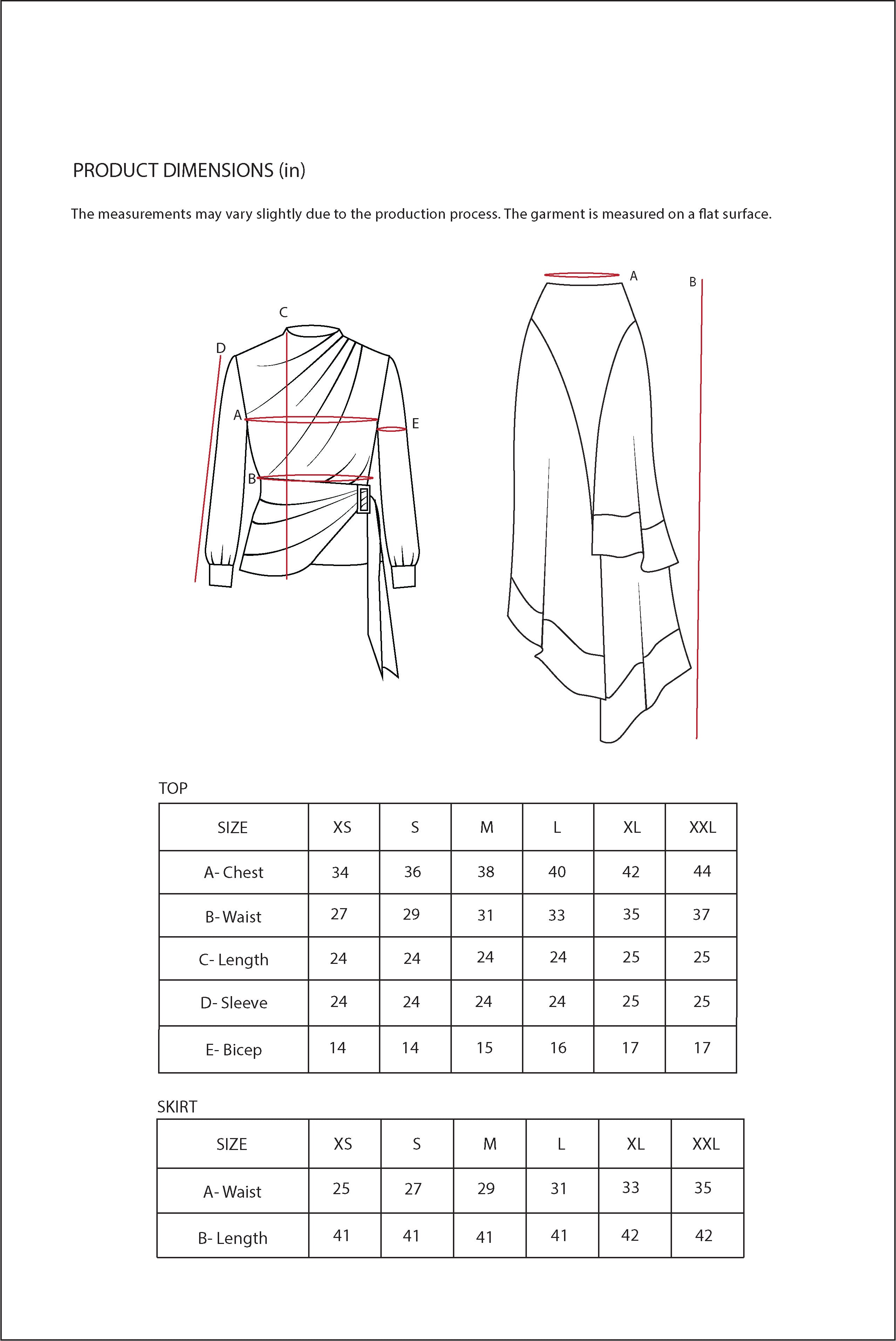 An elegant soft cream top with asymmetric draping and a side buckle is paired with a flowing skirt featuring asymmetrical layers. Crafted from lustrous, lightweight fabric, this sophisticated set offers comfort and modern elegance—ideal for formal or evening occasions.