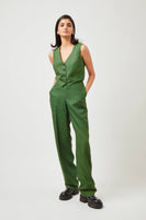 Boasting of a solid suit style V-neck, this black vest is crafted from Linen fabric and designed keeping in mind contemporary styling. The silhouette and the buttoned front reflects a harmonious blend of modern aesthetics and classic sophistication.