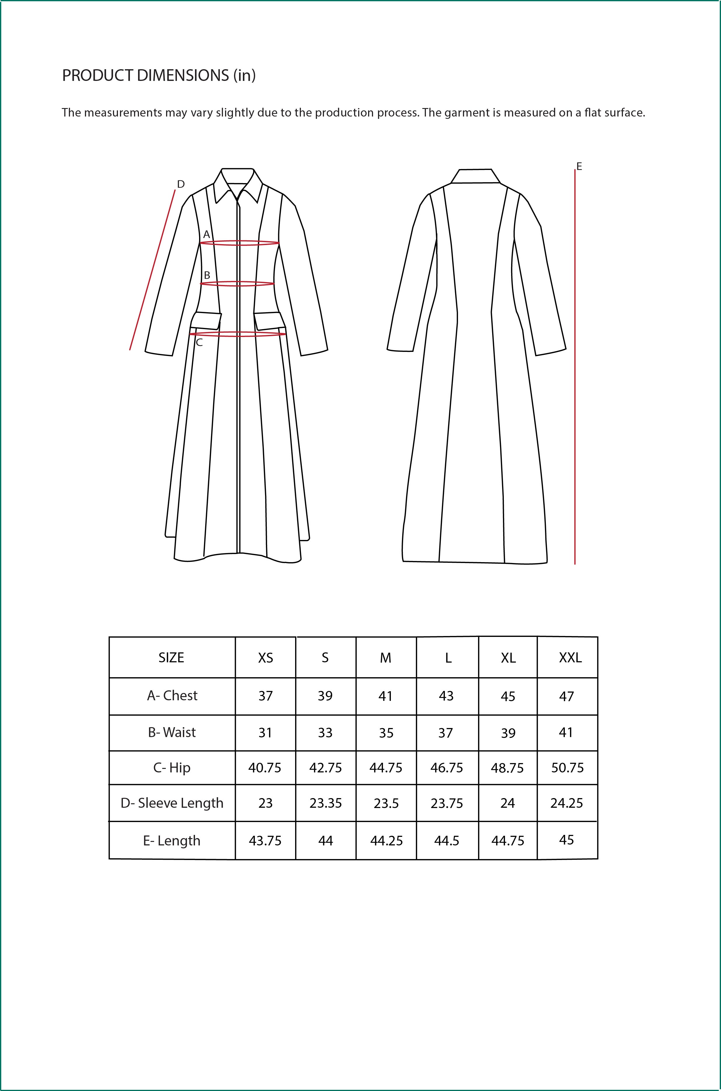 A long-sleeved trench coat with a standard collar and a button closure concealed by an invisible placket. Features an A-line silhouette and includes two welt pockets with flaps in the front, offering a tailored, timeless look.