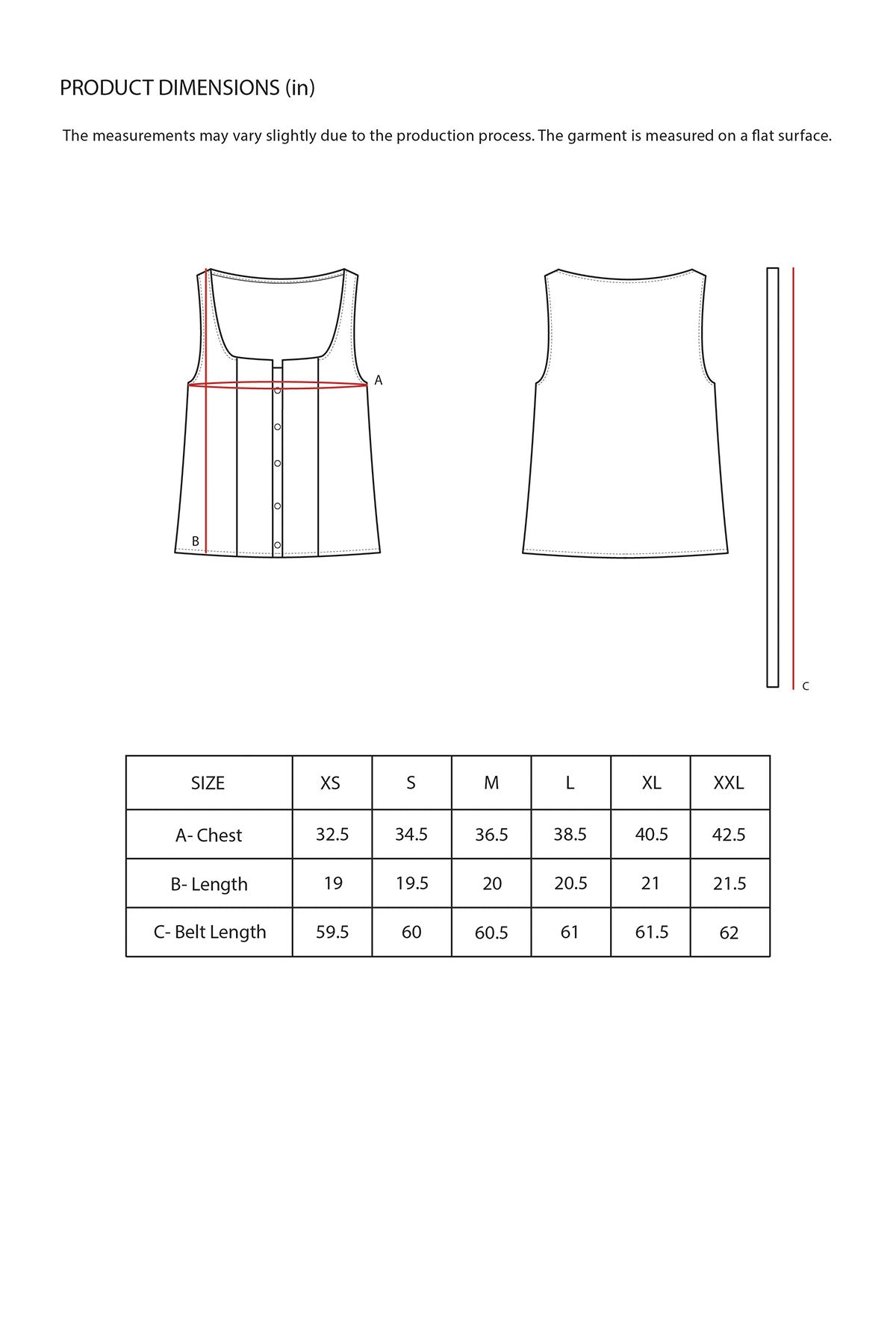 A sleeveless square-neck top with a front button opening and a self-tie belt at the waist. Designed in a flattering regular fit for ease and comfort.