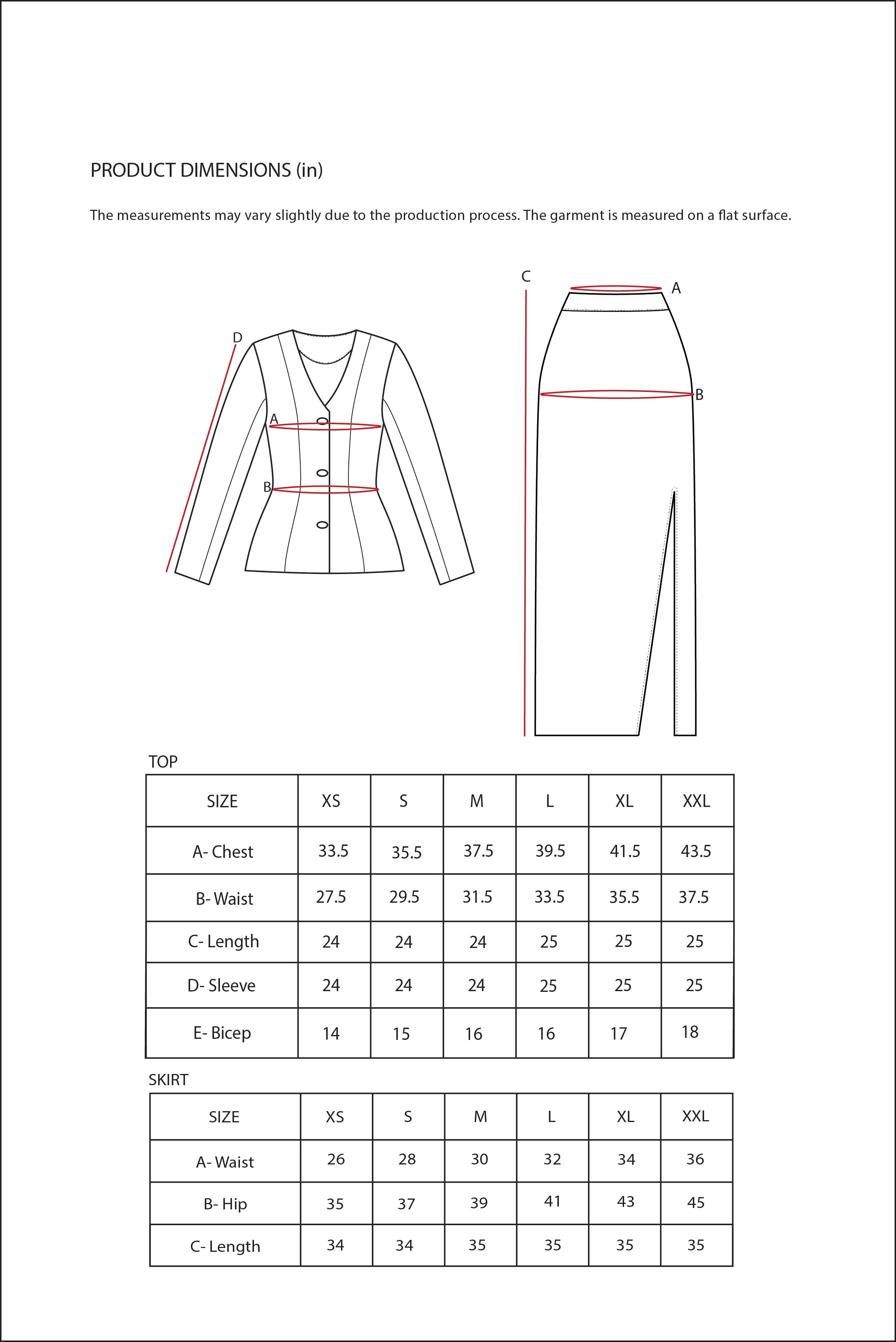 A tailored blazer with a flattering V-neckline and metallic buttons pairs with a high-waisted blue midi skirt featuring a bold brown floral print and front slit. This polished ensemble balances structure and femininity—perfect for day or evening wear and in professional or semi-formal settings.