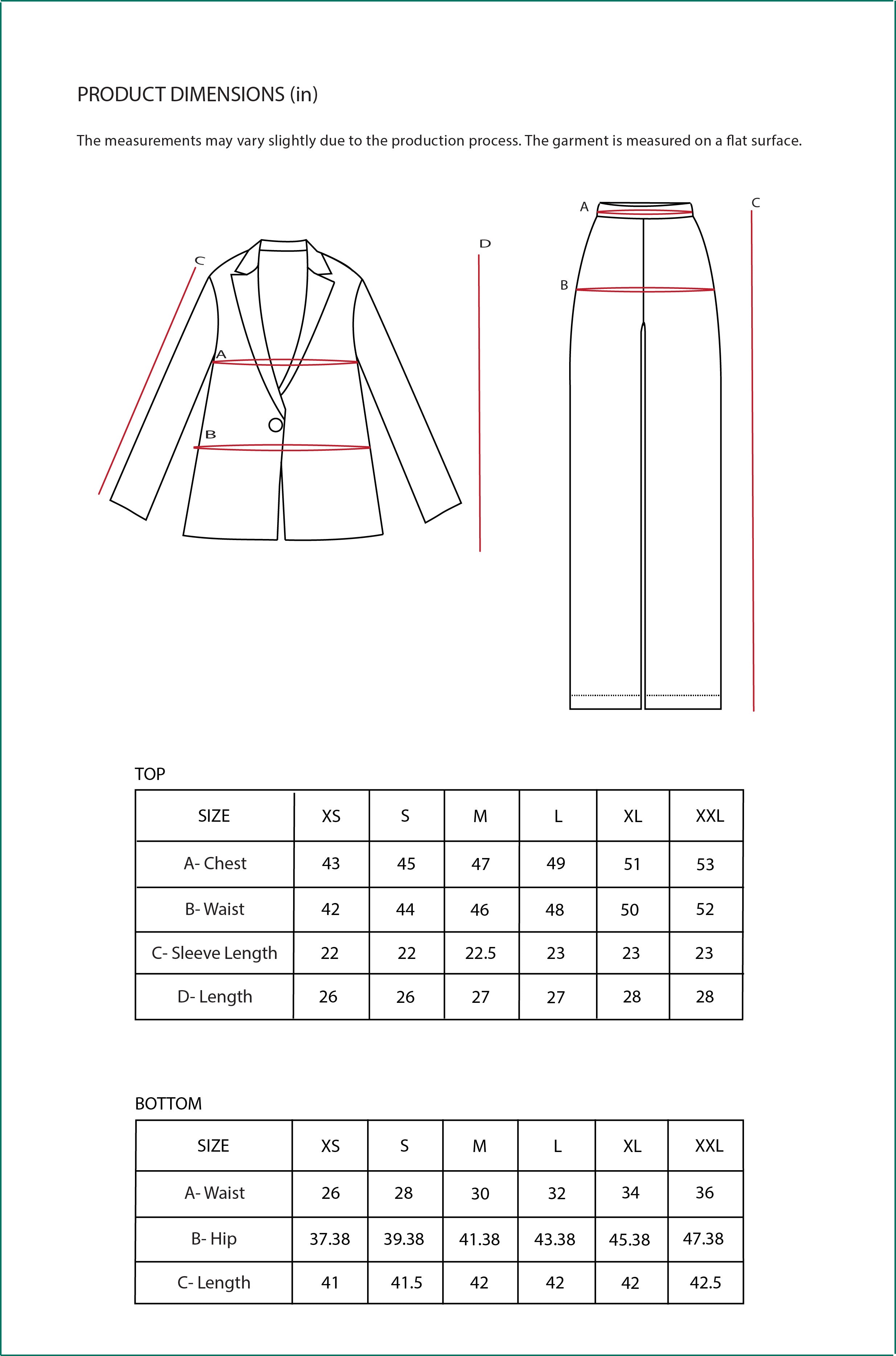 This matching set features a long-sleeved, one-button blazer with a relaxed boxy fit, paired with full-length straight trousers that have a tailored, fitted waist. The pieces offer a chic, monochrome statement with a balance of structured and professional comfort.