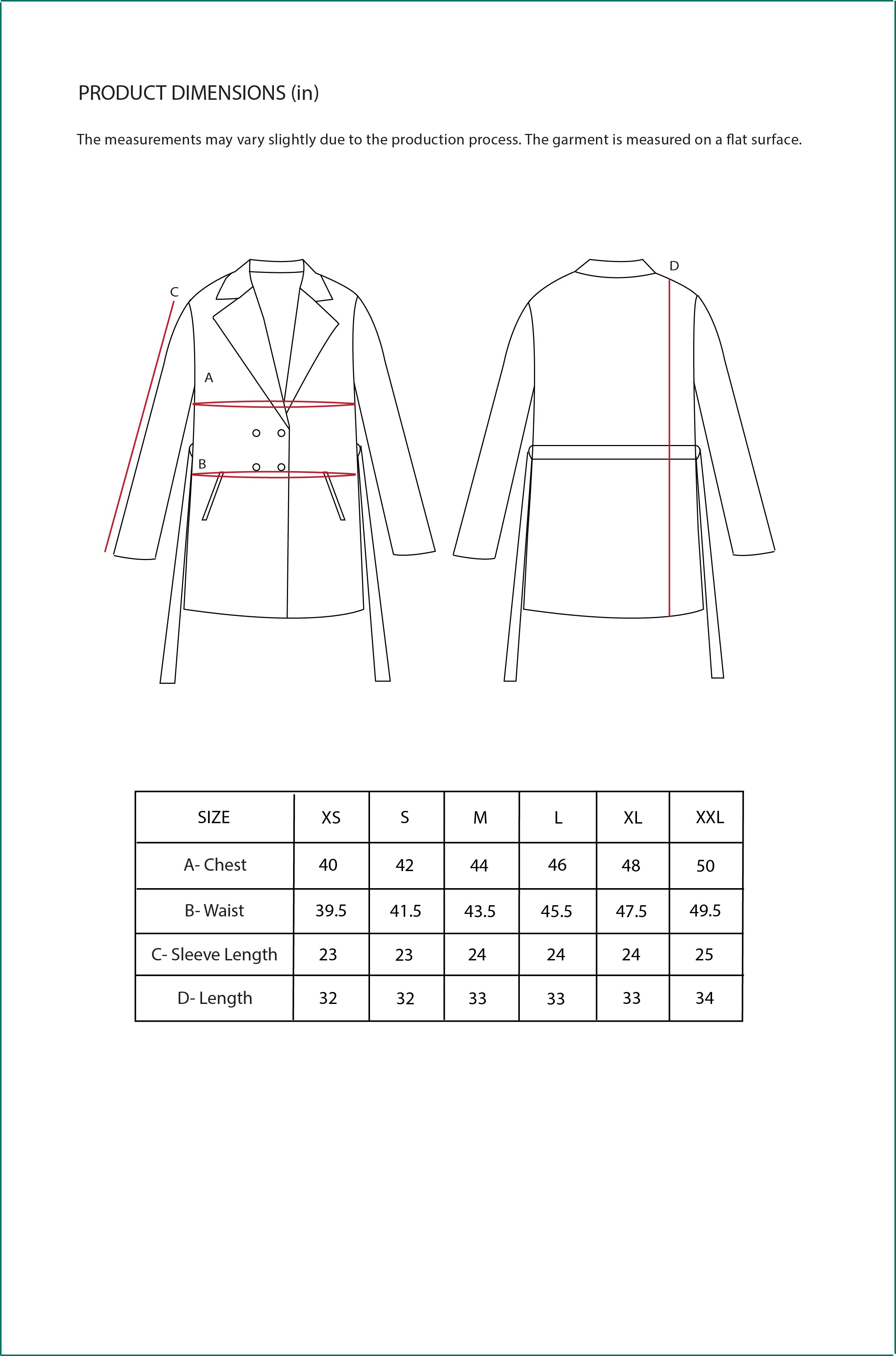 A long-sleeved coat featuring a notched lapel collar and two functional button closures. The design has a straight-line silhouette that is cinched at the waist with a detachable fabric belt which can be tied or secured with its buckle closure. It also includes two buttons on the front, offering a tailored, timeless look.