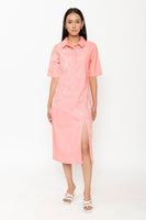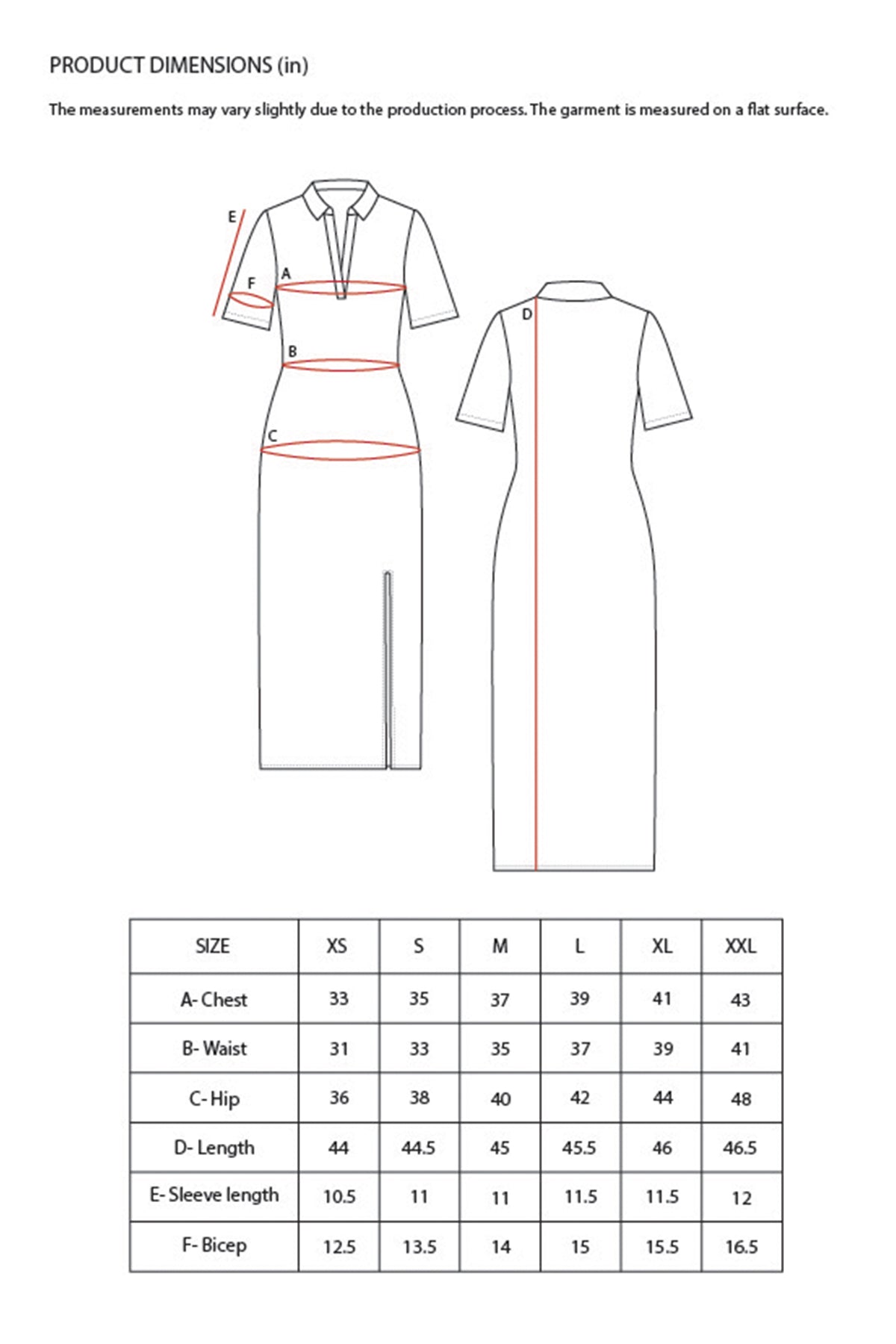 This midi dress has a neat polo collar with cropped sleeves that gives a preppy feel and close fit. Front slit for ease of movement and a button closure.