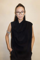 A sleeveless charcoal grey top with a draped cowl neckline pairs with a relaxed-fit wide-leg trouser featuring an elasticated waistband. Made from lightweight, breathable fabric, this versatile set offers effortless elegance and comfort—perfect for casual and refined looks.