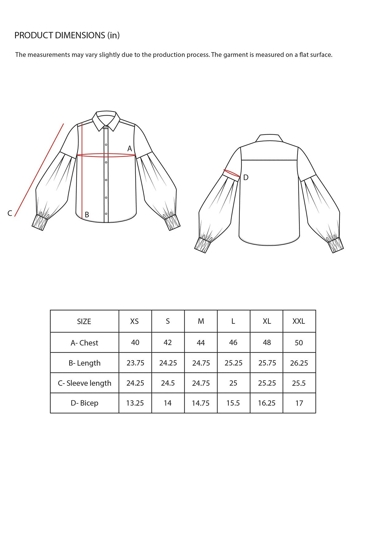 A shirt featuring pleated puff sleeves with Schiffli detailing along the sleeves and cuffs.
